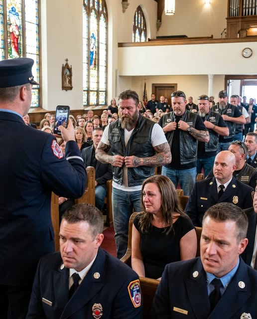 When the bikers stood up during the funeral and removed their vests all at once, the entire church froze —