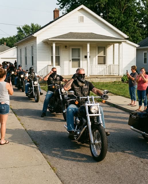 When the entire line of bikers suddenly covered their faces while riding past a small house, people in town assumed