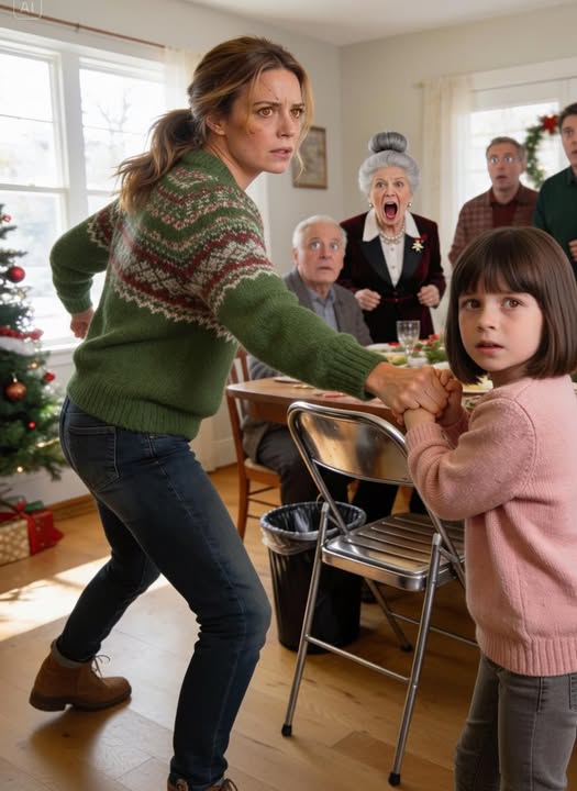 At Christmas dinner, my nine-year-old daughter was placed on a metal folding chair in the corner—right beside the trash can—while