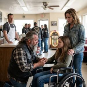 They won’t let me eat, Mommy. A 5-year-old girl in a wheelchair whispered those words in a Tennessee diner, and every fork in the room stopped moving. Her waffle sat cold. Her mother’s card had been declined, and the man behind the counter told them to get out. Nobody stood up. Nobody said a word, but six Hell’s Angels had just walked through the door.